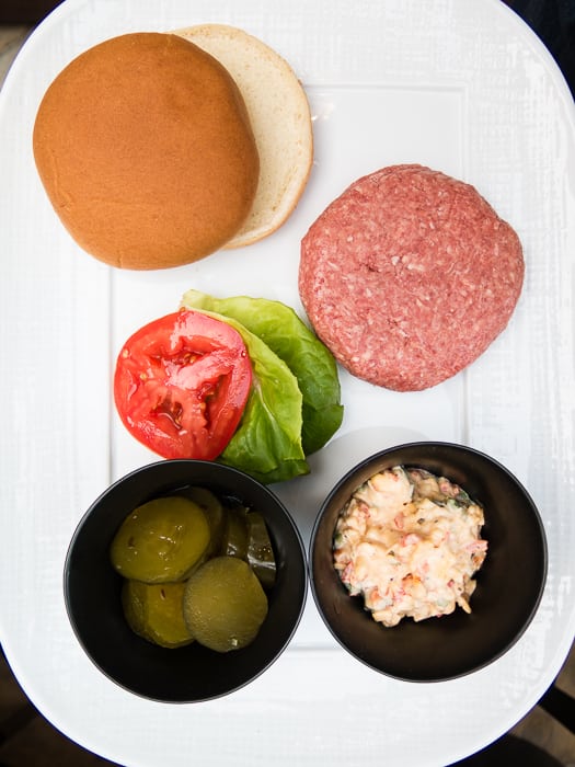 - get a big dollop of pimento cheese ready for the burger