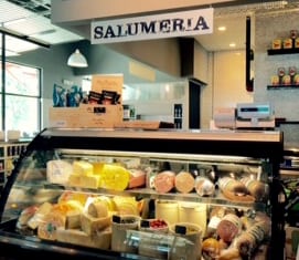 The 4,400 square foot space is designed as a marketplace, with cases of prepared Italian foods, handmade pastas, salads, entrees, desserts, wines, sandwiches and private label legumes, olive oils, vinegars, olives, sauces, and sea salts, plus fresh cut flowers and retail gifts.